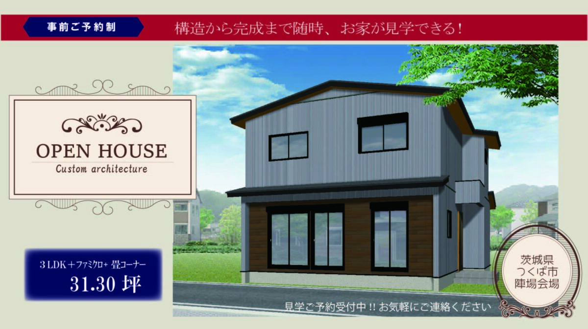 実際に住まわれるお客様のお家をお施主様のご厚意により特別に着工から完成まで随時ご見学することができます。